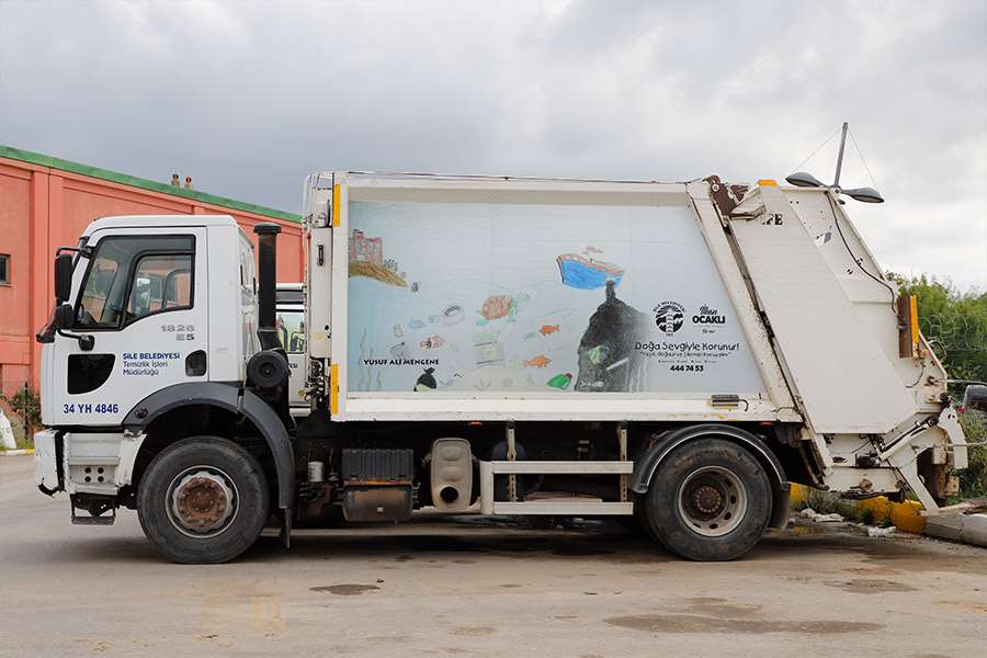Temizlik filosuna dahil edilen araçların ayrıca özel bir anlamı var. Aynı zamanda önemli bir farkındalık çalışmasına da imza atan Şile Belediyesi, Uluslararası Sıfır Atık Günü kapsamında düzenlenen İklim Değişikliği ve Çevre temalı resim yarışmasında derece alan resimler araçların üzerinde sergileniyor.