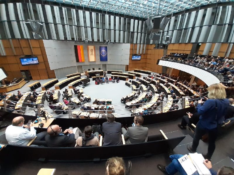 Toplantı öncesinde, Berlin Duvarı’nın 9 Kasım 1989’da yıkılışına kadar olan süreci anlatan kısa film gösterildi. Meclis açılış konuşmasını Berlin Eyalet Meclisi Başkanı Ralf Wieland yaptı. Ardından mikrofona, Berlin Eyaleti’ne hükümet eden Belediye Başkanı Michael Müller geldi. Konuşmalardan sonra, sanatçı Sebastian Krumbiegel tarafından “Die Demokratie ist Weiblich – Demokrasi Dişidir” isimli müzik dinletisi sunuldu. Etkinlikte “kilit konuşmayı”, Doğu Almanya’nın son dönem geçici Devlet Başkanı, Federal Almanya Devlet Bakanı Sabine Bergmann – Pohl yaptı. Duvarın yıkılmasını konu alan kompozisyon yarışmasında dereceye giren öğrenciler de ödüllerini meclis toplantısında aldı.