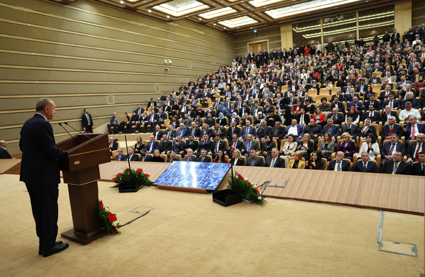 Cumhurbaşkanı Erdoğan, gerçeğin peşinden koşmak yerine yerel ve küresel güç odaklarına tetikçilik yapanlara rağmen mücadelelerini yürüttüklerini vurgulayarak, “Duruşumuzu hiçbir zaman bozmadık. Yalan ve iftiraya asla teslim olmadık. İtibar suikastları karşısında geri adım atmadık. Haysiyet fukaralarının tehditlerine boyun eğmedik. Karşımızdakiler ne yaparsa yapsın, biz daima hakkın ve hakikatin hatırını üstte tuttuk” diye konuştu.
