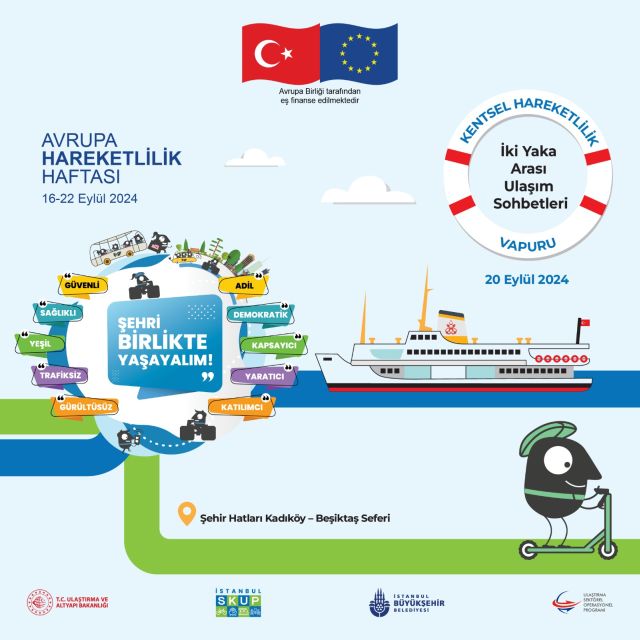 İstanbul genelinde hafta boyunca devam eden Avrupa Hareketlilik Haftası etkinlikler kapsamında İstanbul Büyükşehir Belediyesi iştiraki Şehir Hatları AŞ de denizde kent içi hareketliliğe dikkat çekmek için harekete geçti. Şehir Hatları, İstanbullular için 20 Eylül Cuma günü Kadıköy-Beşiktaş seferlerinde Kentsel Hareketlilik Vapuru ile “İki Yaka Arası Ulaşım Sohbetleri” düzenleyecek. Etkinliklerle sürdürülebilir hareketliliği ve aktif hareketliliği artırmak ve karbon salınımı azaltmakla ilgili farkındalıklar yaratılması amaçlanıyor.
