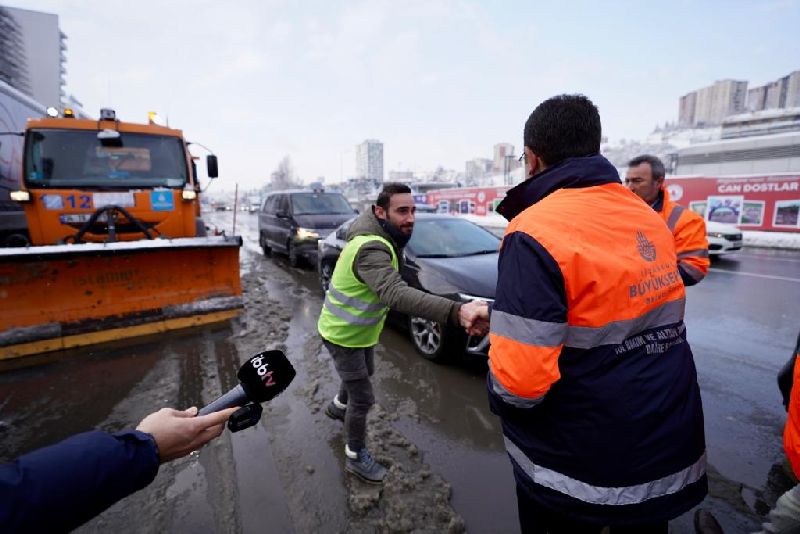 İmamoğlu, canlı yayının ardından İstanbul sokaklarında kar denetimine çıktı. Kağıthane Cendere Yolu ve Beykoz Kavacık’ta kritik noktaları ziyaret eden İmamoğlu, karla mücadeleyi sahada sürdüren ekiplerle bir araya geldi. Çalışanlardan bilgi alan İmamoğlu, mesai arkadaşlarına telsizden seslenerek başarılar diledi.
