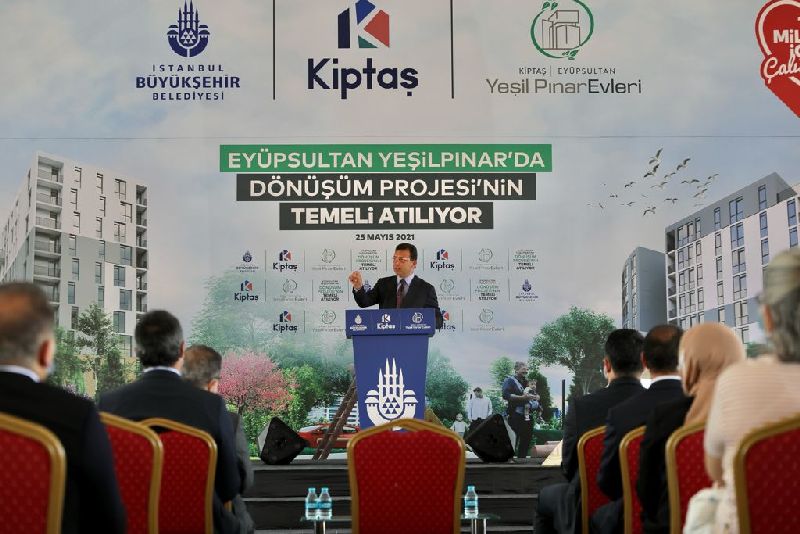 İBB iştiraki KİPTAŞ, 50 yıldır çözülemeyen sorunu çözdü ve Eyüpsultan Yeşilpınar Mahallesi’nde kentsel dönüşümü başlattı. ‘Yeşil Pınar Evleri Temel Atma Töreninde’ konuşan İBB Başkanı Ekrem İmamoğlu, “Burada, 192 bağımsız birim ve 159 hak sahibi bulunan sürece gerçekçi, somut bir çözüm bulunulmuştur. Adil olunmuştur, şeffaf olunmuştur, katılımcı bir süreç yönetilmiştir ve yüzde 100 ikna sağlanarak, insanlarımızın imzasıyla süreç yönetilmiştir” dedi. Benzer süreçlerde ortaya farklı çıkar gruplarının çıktığını vurgulayan İmamoğlu, “Farklı çıkar grupları olacak. ‘Çıkar grubu’ veya ‘kötü niyet’ derken, burun partisi de yok; onu da söyleyeyim. O parti, bu parti, şu parti… Benim dilim, bu konuda net. Yani, ‘Benim partinden, koruyayım’ veya ‘Başka parti de var, söveyim, işte döveyim’ öyle bir anlayışım yok benim. Kötü, kötüdür; iyi, iyidir. O bakımdan, o çıkar gruplarına hiç fırsat vermedim. Vermeyeceğiz de. Bu konuda taviz yok” ifadelerini kullandı.