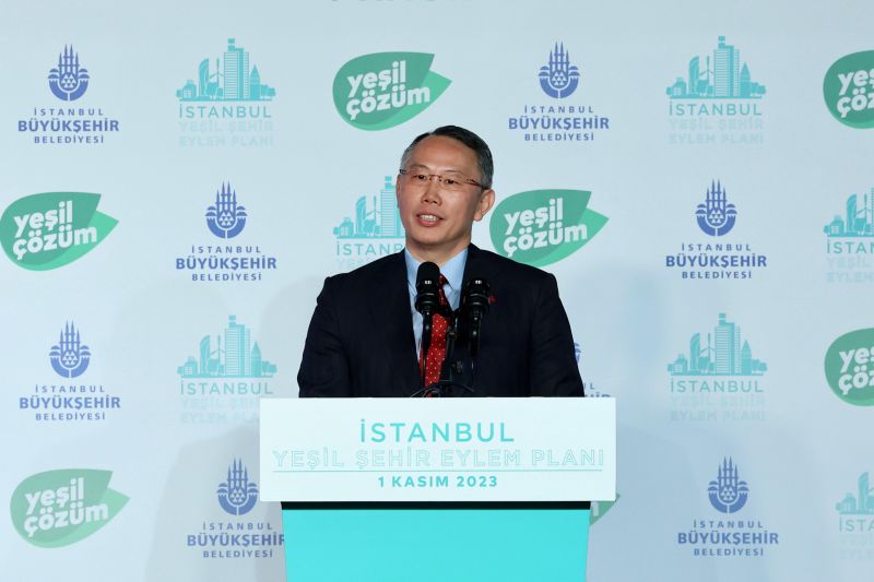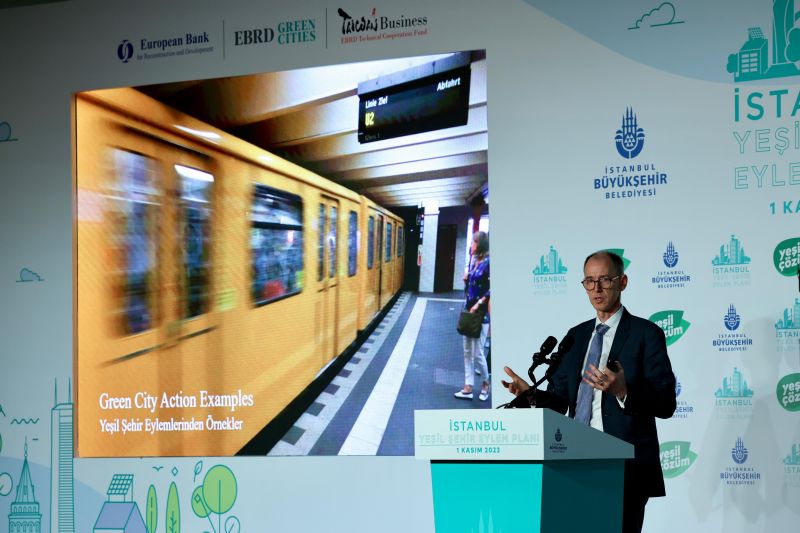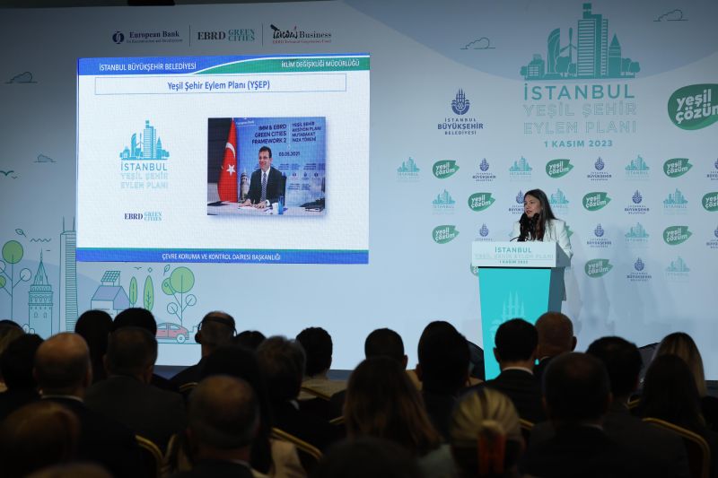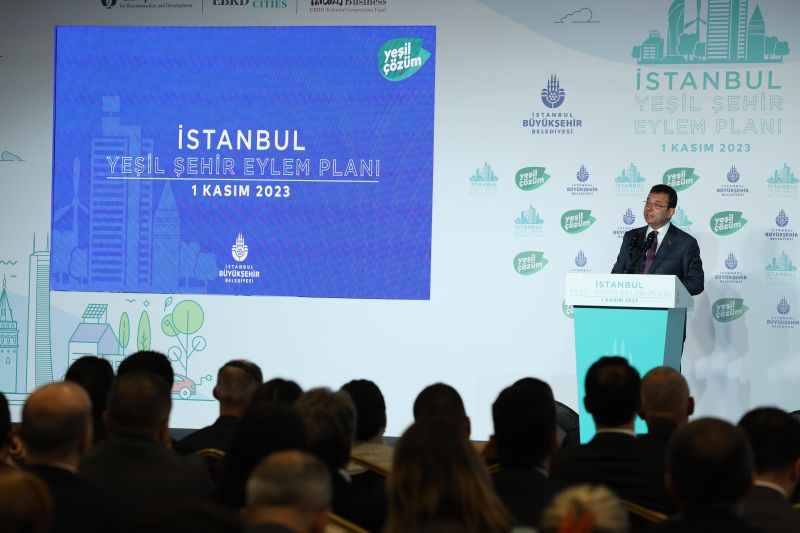 İstanbul Büyükşehir Belediye (İBB) Başkanı Ekrem İmamoğlu, İBB Çevre Koruma ve Kontrol Dairesi Başkanlığı ve Avrupa İmar ve Kalkınma Bankası (EBRD) iş birliğiyle düzenlenen “İstanbul Yeşil Şehir Eylem Planı” tanıtım toplantısına katıldı. Haliç Kongre Merkezi’nde düzenlenen toplantıda, sırasıyla; İBB Çevre Koruma ve Kontrol Dairesi Başkanı Prof. Dr. Ayşen Erdinçler, Uluslararası Arup firması ekip lideri Stephen Cook, Taiwan Business yetkilisi Volkan Chih-Yang Huang, EBRD Sürdürülebilir Altyapı Grubu Direktörü Nandita Parshad ve İmamoğlu birer konuşma yaptı. İstanbul’da “Yeşil Çözüm” vizyonuyla yola çıktıklarını ve önlerine, 2050 yılına karbon nötr şehir olarak girme hedefini koyduklarını aktaran İmamoğlu, “Güçlü adımlar atarsak, binlerce yıl tarihi olan kentimizin ileriki yıllara, yüzyıllara sağlıklı bir şekilde girmesini sağlayabiliriz” dedi.