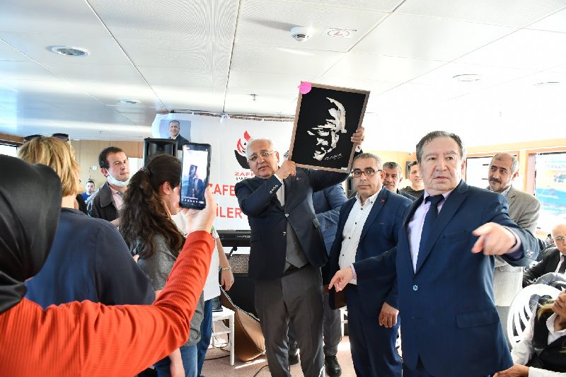 Öncelikle engelli kardeşlerimin el emeği olan Atatürk portresi işlemeli tablolar benim için hediye değil, bir onurdur. Teşekkür ederim.