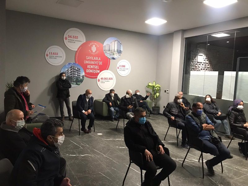 Ümraniye Belediyesi tarafından, vatandaşların kentsel dönüşümle ilgili sorunlarına çözüm üretmek amacıyla Elmalıkent Mahallesi’nde hizmete açılan Kentsel Dönüşüm Ofisi’nde Elmalıkent Site Yöneticileri ve mahalle sakinlerine yönelik bilgilendirme toplantısı yapıldı.