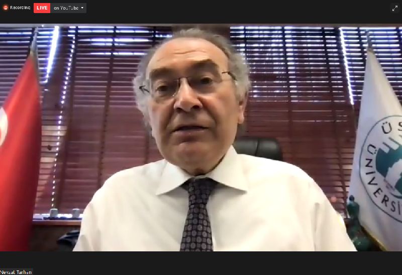 Kriz yönetim ilkeleri belirlediklerini kaydeden Prof. Dr. Nevzat Tarhan, “Kriz yönetimi ilkelerinden birisi risk yönetimidir. Riskler belirlendiğinde onları yönetebilmek gerekiyor. Eğer risk yönetimi yoksa zaten krizde her an fırtınaya yakalanılabilir. Örneğin bir kaptanın limandan çıktığı zaman risk yönetimi yapması lazım. Bir yönetimin, bir liderliğin burada gelecek muhtemel riskleri öngörüp onunla ilgili önem ve öncelik sıralaması yapması gerekir. Biz bu krizde risk yönetimimizi yaptığımız için dünyanın gidişini gördük, bu gidiş içerisinde dijitalleşmenin önemli olduğunu gördük. Üst yönetim olarak da biraz daha hazırlıklı yakalandık. Risk yönetimini görerek altyapı oluşturduğumuz için yeni duruma da hızlı uyum sağladık. Üsküdar Üniversitesi bu konuda önemli bir sınav verdi. Şu ana kadar da halen aktif olarak devam ediyoruz.” diye konuştu.