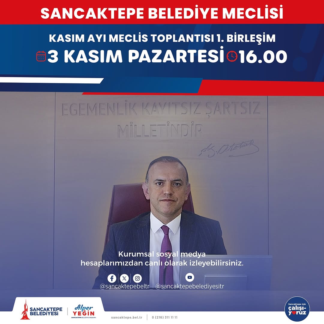 Sancaktepe Belediye Meclisi, Kasım ayı çalışmalarına bugün başlıyor. Meclisin Kasım Ayı 1. Birleşimi, 3 Kasım Pazartesi (bugün) saatler 16.00’da toplanacak.