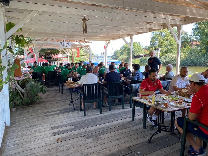 Futbolcular Göksu deresi kıyısında bulunan Şengül Çiftliği et,balık ve kahvaltı tesislerinde kaynaşma adına güzel bir aktiviteye ev sahipliği yaptı .Kahvaltı sonrası mekanın tadını çıkaran futbolcular yeşillikler içerisinde hamakta sallandılar ve gönüllerince bir gün geçirdiler.