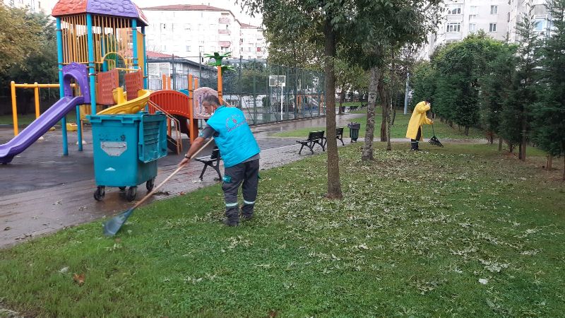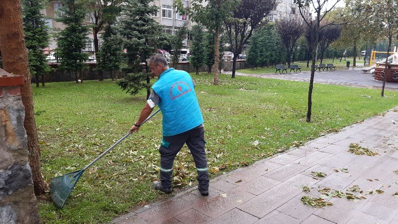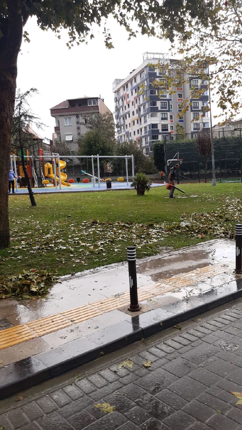 Dün İstanbul’da aniden bastıran yağmur ve ardından yaşanan dolu, Ümraniye’de de etkili oldu. Özellikle dolunun etkisi ile park ve bahçeler ile kaldırımlarda bulunan ağaçların yaprakları etrafa saçıldı. Bu durum karşısında harekete geçen Ümraniye Belediyesi Temizlik İşleri Müdürlüğü ile Park ve Bahçeler Müdürlüğü ekipleri, çevre kirliliğine neden olan yaprakları temizlemek için seferber oldu. Park ve bahçelerde yerlere saçılan ağaç yaprakları ekiplerin çalışmaları ile temizlendi.