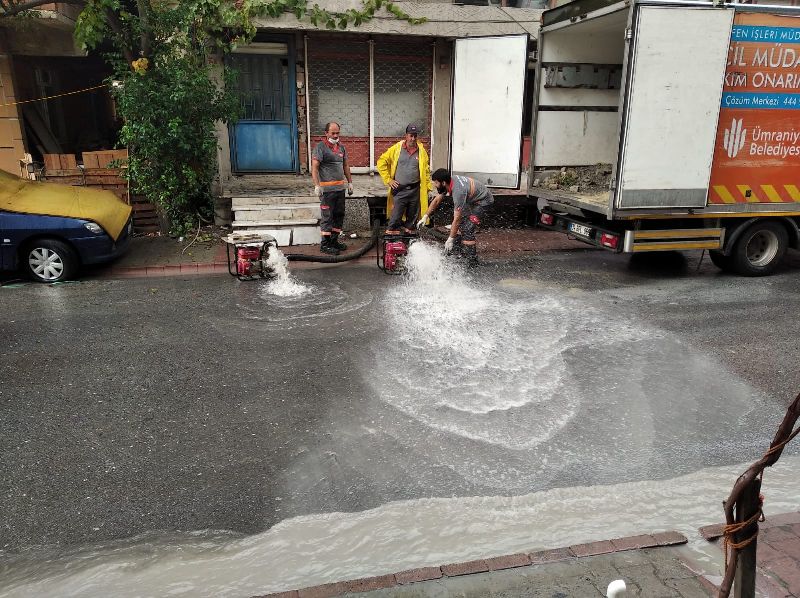 Ümraniye Belediyesi Fen İşleri Müdürlüğü Acil Bakım ve Onarım ekipleri, dün yaşanan yağmurun ardından ilçenin çeşitli yerlerinden gelen su baskını ihbarlarını tek tek değerlendirdi. İlçe genelinden 30 su baskını ihbarı gelirken, olay yerine giden ekipler su basan işyeri ve evlerdeki suları motopomp yardımı ile tahliye etti.