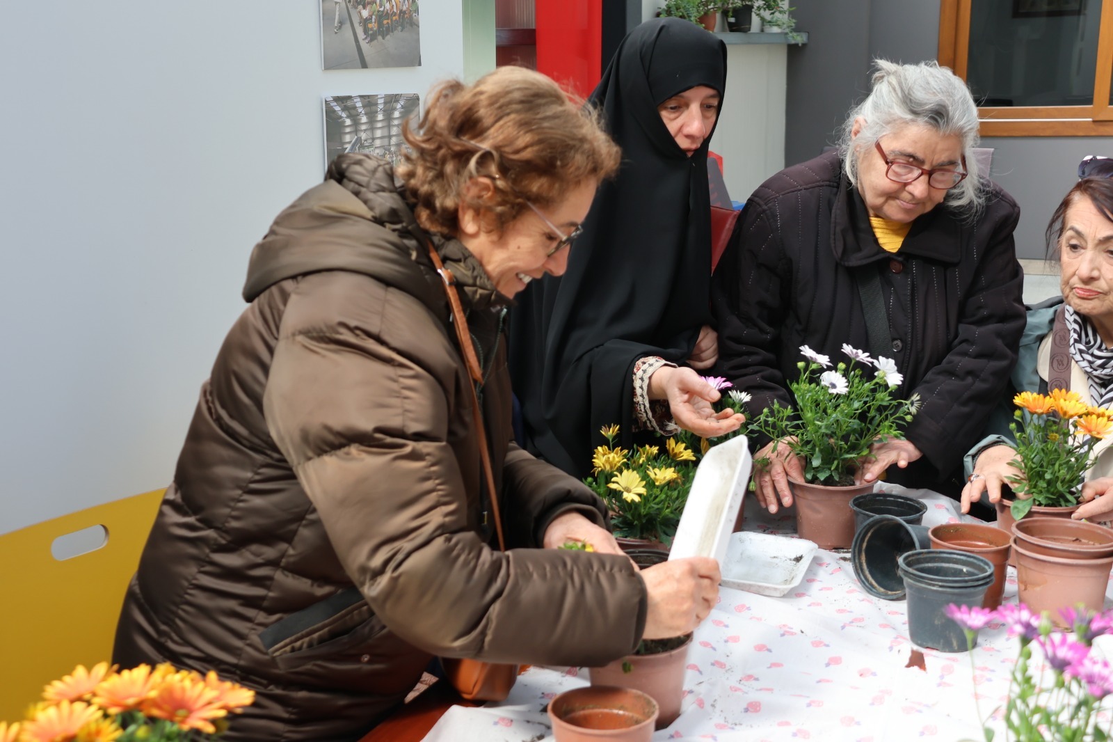 Kompost makinesinden elde edilen organik meyve gübresi ile etkinliğin en anlamlı anlarından biri yaşandı. Büyükler, bu gübreyi kullanarak kendi elleriyle çiçek dikimi gerçekleştirdi. Toprağa dokunmanın huzurunu yaşayan katılımcılar, hem üretmenin hem de doğaya katkı sağlamanın mutluluğunu yaşadı. Etkinlik sonunda, özenle diktikleri çiçekler kendilerine hediye edilerek bu güzel gün kalıcı bir hatıraya dönüştürüldü.